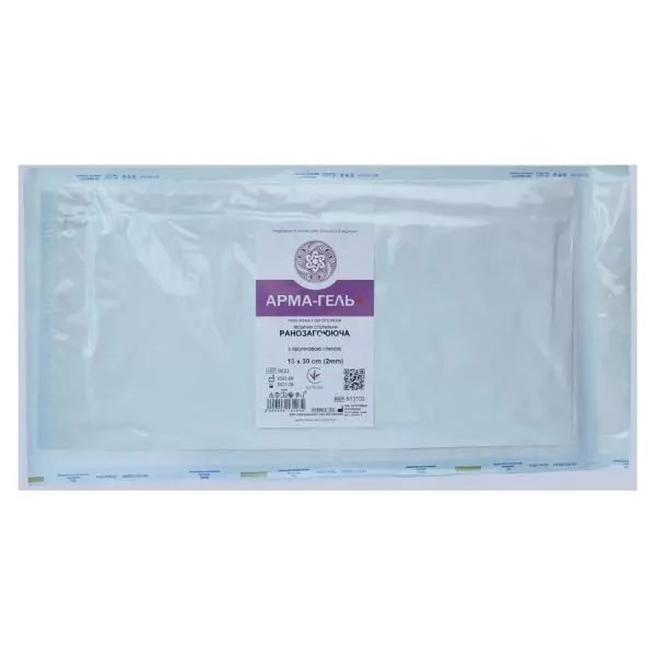 ПОВ`ЯЗКИ ГІДРОГЕЛЕВІ СТЕРИЛЬНІ МЕДИЧНІ «АРМА-ГЕЛЬ+» З КАОЛІНОВОЮ ГЛИНОЮ призначаються лікарем з урахуванням необхідної методики лікування. Пов’язка поглинає ексудат, який виділяється з рани. За рахунок сітчастої матриці пов’язка здатна поглинати великий об’єм виділень не руйнуючись. Одночасно з цим глина, яка знаходиться на полімерній матриці пов’язки, повільно виділяється та проникає в рану, створюючи пролонгований лікувальний ефект. Каолінова глина сприяє поглинанню тканевих токсинів, які виділяються з рани, збільшенню судинної проникності, підсилює мікроциркуляцію в шкірі. А також змінює рівень вільнорадикального окислення в тканинах і кровообігу. Завдяки дренажним та сорбційним властивостям пов’язки некротичні утворення розм’якшуються, що дозволяє досить легко видаляти їх з рани. Показання – опіки II-III ступенів, трофічні язви, діабетична стопа, пролежні, рани, ускладнені піогенною флорою, довго не заживаючі гнійні рани. В залежності від стану рани та фази ранового процесу обирається термін перебування пов’язки на рані, але він не може перевищувати 48 годин.